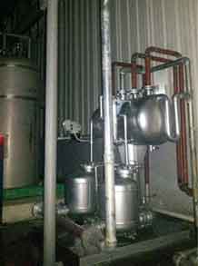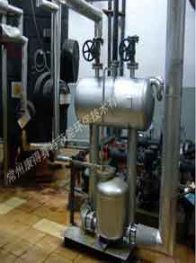 通常冷凝水可以通過疏水閥很方便地排出設(shè)備,進(jìn)入冷凝水排放系統(tǒng),如果冷凝水已經(jīng)被污染,則應(yīng)該直接排放掉;如果沒有污染,可以將其回收到鍋爐給水箱以利用冷凝水含有的熱量,這樣同時(shí)也節(jié)省了水和水處理的費(fèi)用。有時(shí)用汽設(shè)備內(nèi)部會(huì)產(chǎn)生真空,這樣會(huì)影響冷凝水的排出,從而影響蒸汽換熱效率,這時(shí)冷凝水就需要用泵壓出去。