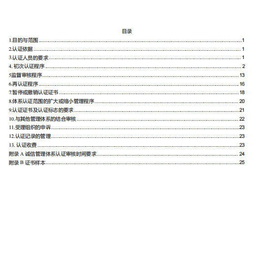已公示企業(yè)誠信管理體系認(rèn)證實(shí)施規(guī)則封面及目錄,若需獲取全文可通過以下途徑獲?。?/span>